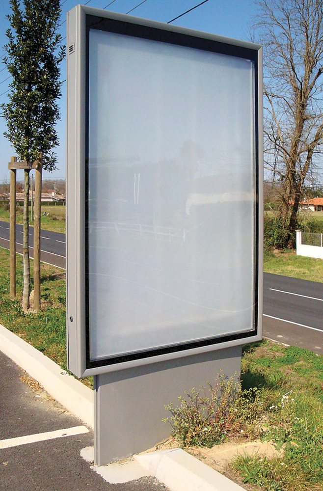 – Version lumineux : Cadre intérieur en diffusant blanc avec 2 pinces affiches. Face arrière en tôle galva laqué RAL.